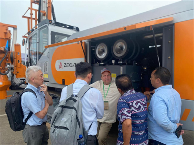 2024年9月11日,第22屆印尼礦業展覽會(Indonesia Mining Exhibition)在雅加達盛大開幕,志高機械印度尼西亞經銷商ANK公司及志高公司代表攜ZEGA D480RC、ZEGA T640J及ZEGA SPD880D-8多款設備參展。ZEGA D480RC是志高公司最新投放市場的一體式反循環勘探鉆機,配備410kw大功率康明斯發動機和25bar壓力、33m3/min大排量空壓機,能夠滿足120-150mm孔徑反循環品位控制鉆探孔的鑿巖需求。反循環裝置的支座為多角度鉆架,可滿足各種復雜工況。此外,ZEGA D480RC還充分考慮了鉆機操作人員的安全和舒適度,配備獨立遙控系統,可遠距離對反循環裝置進行精準遙控控制,使操作人員遠離粉塵、碎屑及其他操作風險。