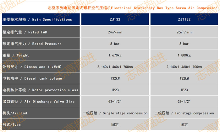 志堅系列電動固定式螺桿空氣壓縮機